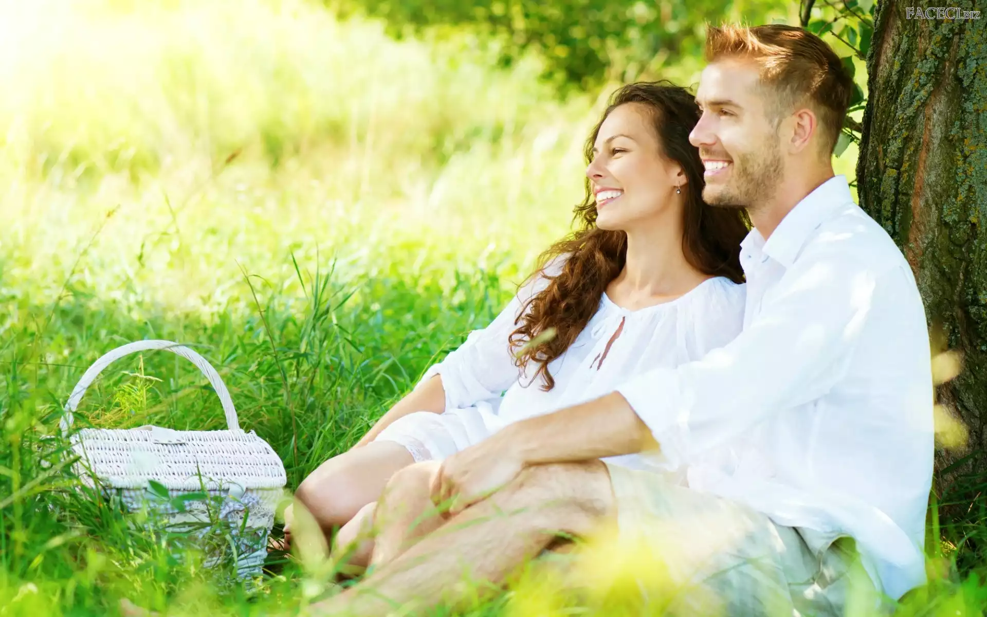 Wiosna, Łąka, Kobieta, Piknik, Światło, Mężczyzna, Drzewo - faceci.biz