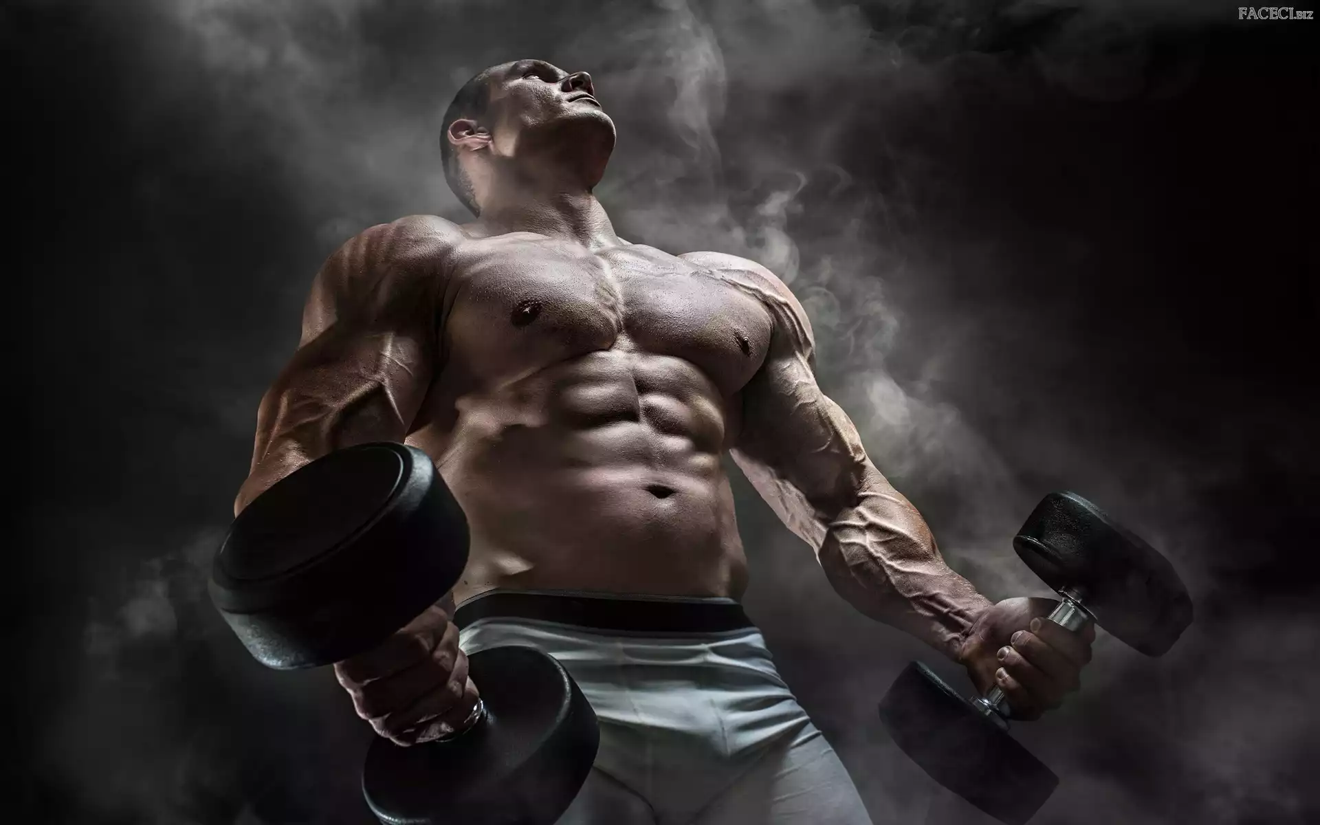 Umięśniony, Mężczyzna, Siłownia, Hantle - faceci.biz