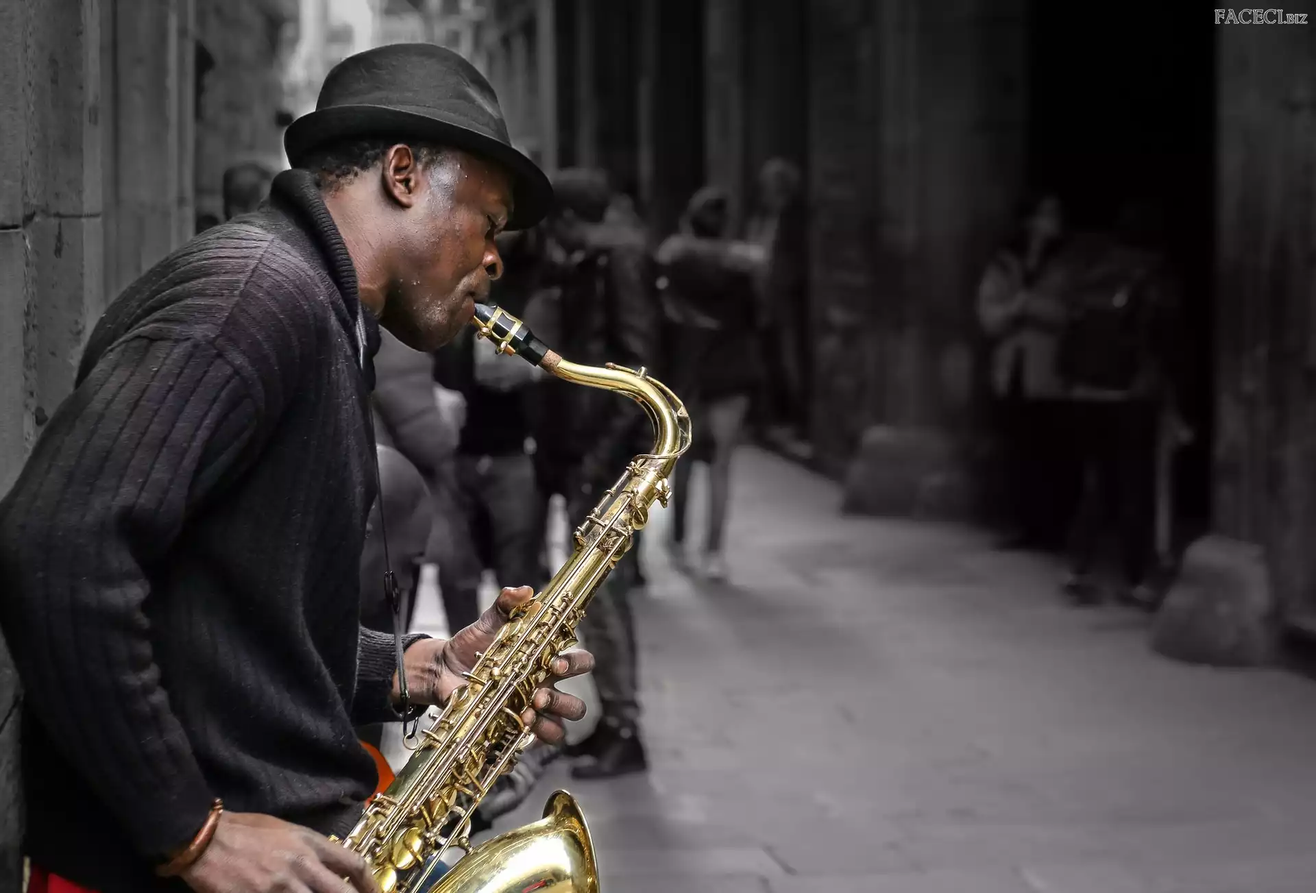 Ulica, Mężczyzna, Saksofon - faceci.biz